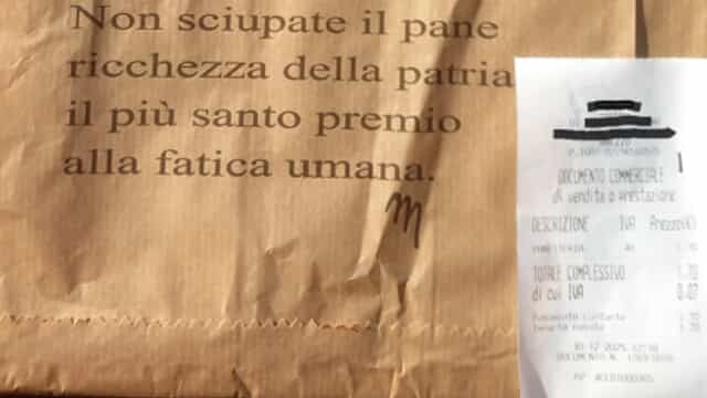 La Preghiera del Pane, scitta da Mussolini, è riportata sulle buste utilizzate da due forni aretini. I versi scritti dal Duce furono pubblicati per la prima volta sul Popolo d’Italia il 25 marzo 1928. E ora sono ricomparsi sulle buste di carta nelle quali vengono consegnati filoncini di pane di due pinti vendita Panart. Pare che le confezioni siano in uso da vari anni. I nuovi gestori avrebbero semplicemente riutilizzati gli imballaggi, forse senza rendersi conto di cosa c’era scritto sopra.