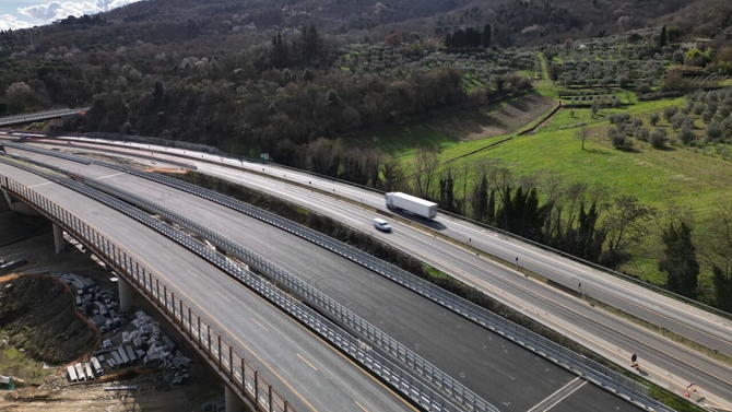 Tra il km 311+000 e il km 313+000 entrerà infatti in esercizio il viadotto Ribuio, opera cardine del programma di ampliamento alla terza corsia tra Incisa e Firenze Sud.